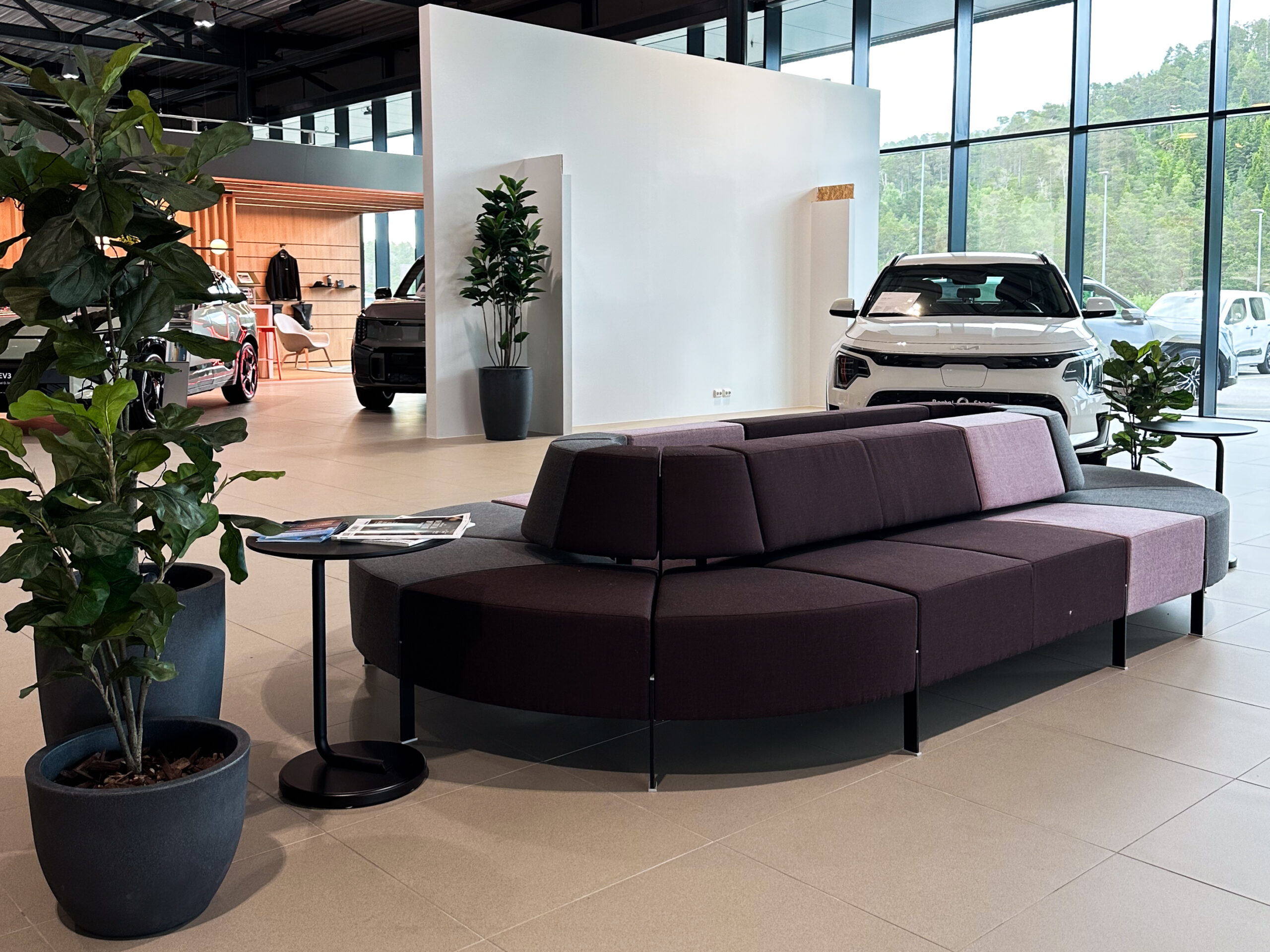 Hovedbygget strekker seg over hele 8000 m² og huser salgsavdelingen med utstillinger av de ulike bilmerkene. Her finner kundene også komfortable lounger i både første og andre etasje, med mulighet for å kjøpe mat og benytte små arbeidsrom – perfekt for dem som ønsker å jobbe mens de venter.